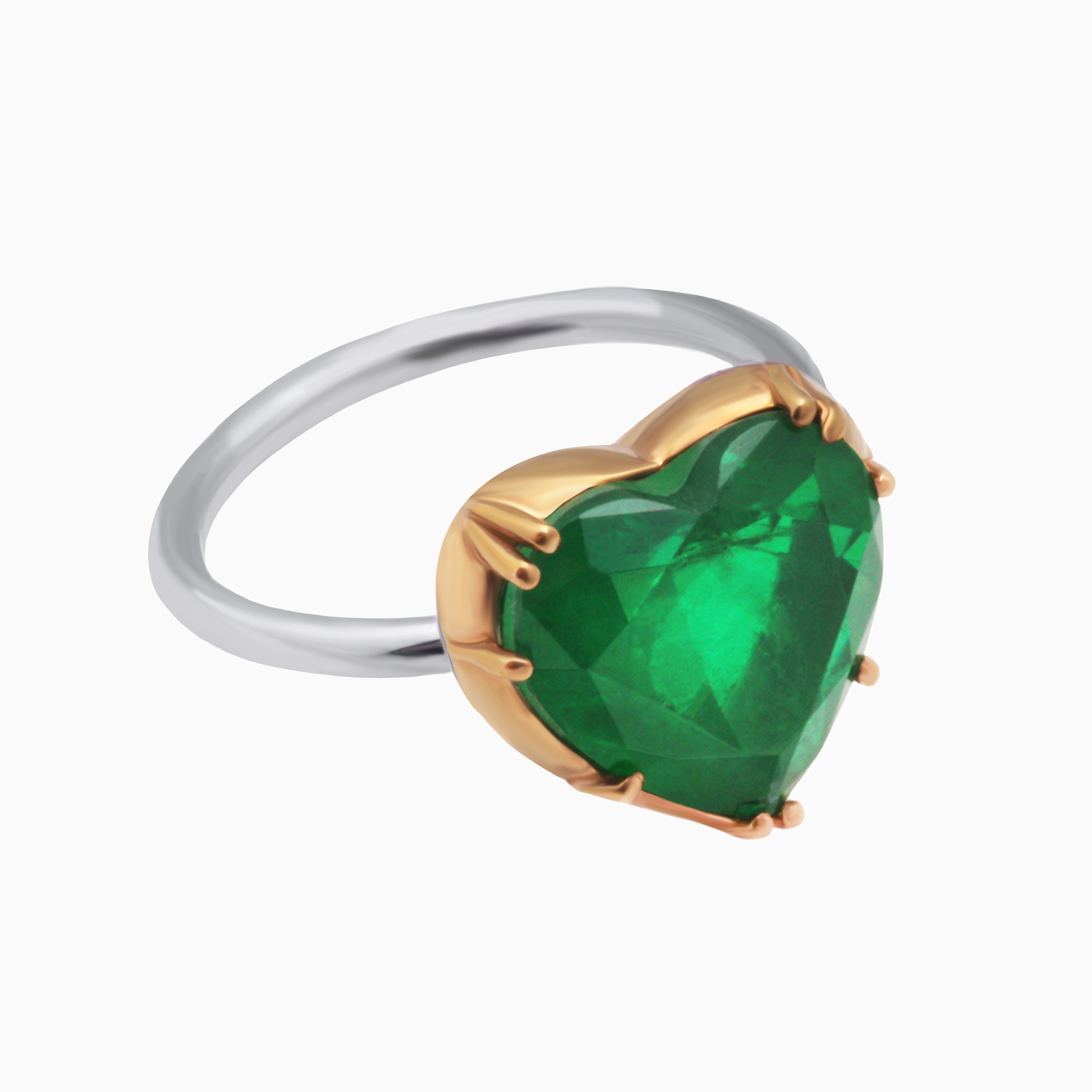 Камень сияет в позолоченном касте, а изящная шинка из серебра, покрытая белым родием, подчёркивает блеск циркона и визуально усиливает его игру света.
